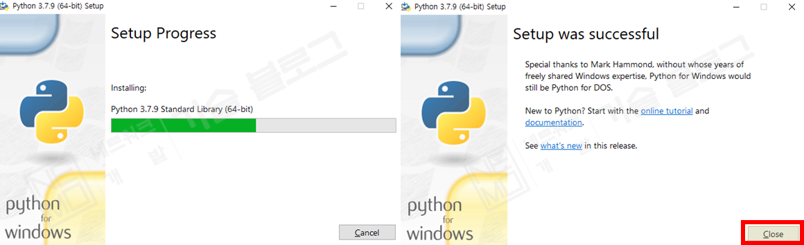 - 설치 완료 후 Close