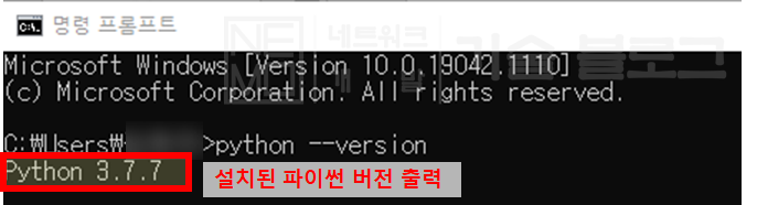 ㅇ CLI 상에서 버전 확인을 통해 파이썬 설치 여부를 확인하는 방법(환경변수 설정 옵션을 선택한 경우만 가능)