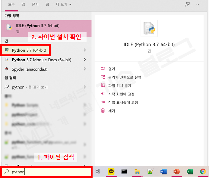 (예시 - 윈도우즈 10 (64bit) 에서 python 3.7을 다운로드 하는 경우)