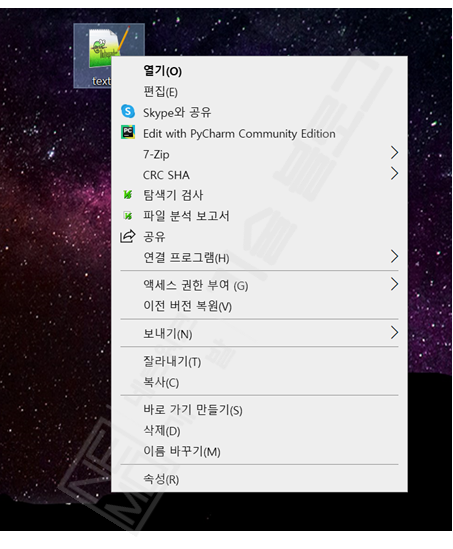 (1) 아무 파일 위에 커서를 두고 마우스 우클릭