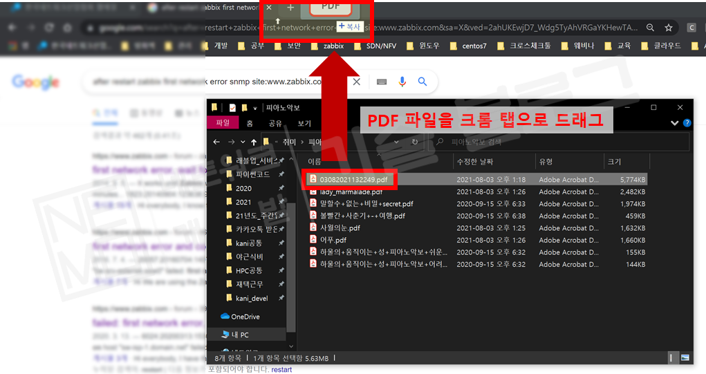 - 아래와 같이 PDF 파일을 크롬 탭으로 드래그해서 크롬창에서 PDF 파일 열기