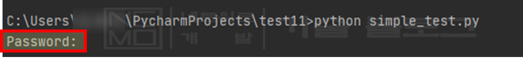 - 코드를 실행시키면 아래와 같이 Password : 를 직접 입력하도록 입력창이 나타남