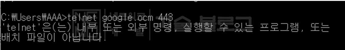 telnet이 설치되어 있지 않아서 윈도우에서 명령어를 사용하지 못하는 상황으로