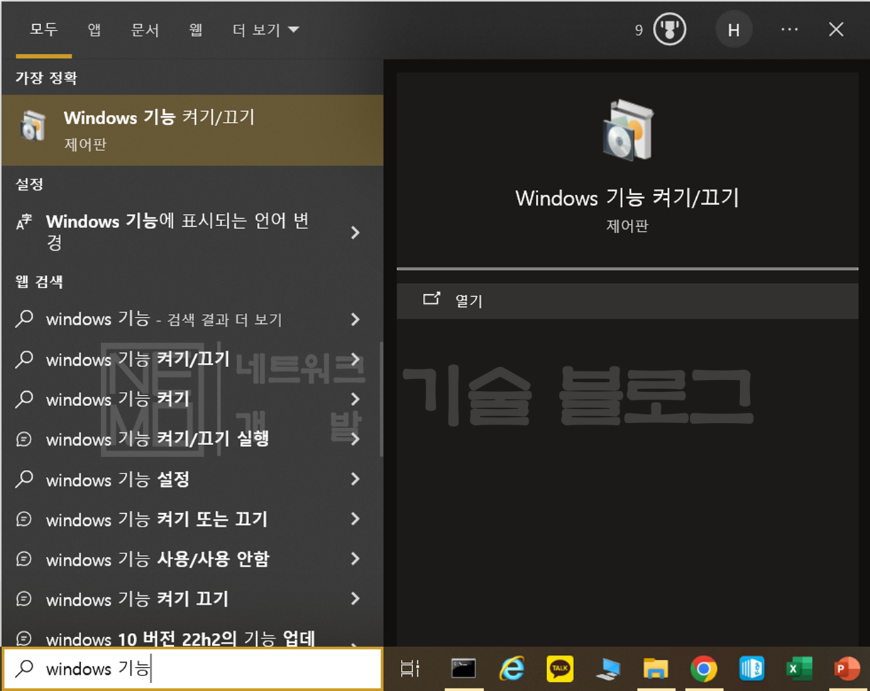 1) 아래와 같이 "windows 기능 켜기/끄기" 창을 열어주세요