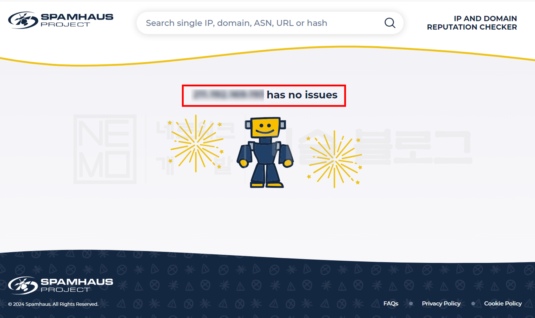 - 스팸하우스에서 왜 해당 IP 혹은 도메인을 Blocklist에 등록했는지에 대한 상세한 이유와 조치 방법까지 알려줌