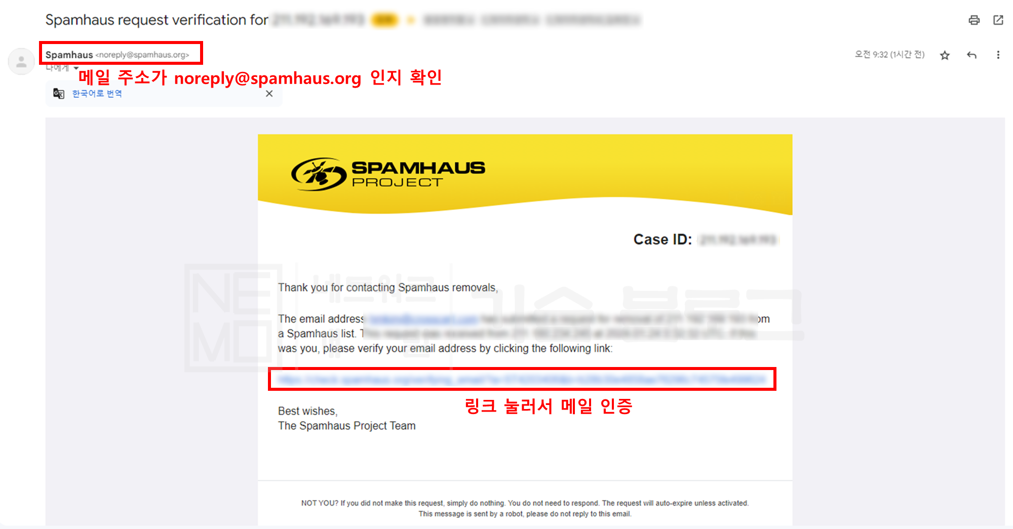 4) 제출한 메일 주소로 로그인하여 스팸하우스에서 온 메일의 인증 링크 클릭
